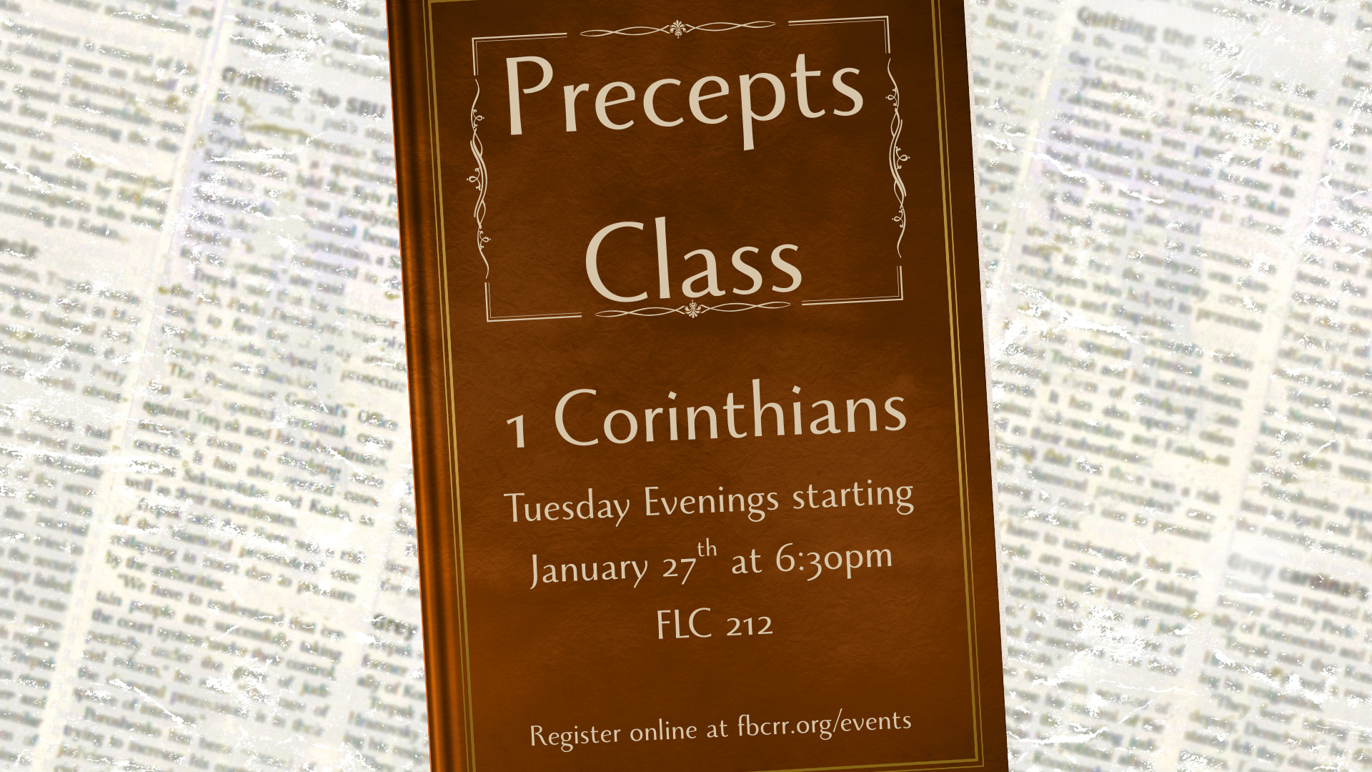 Please join us on Tuesday evening for an in-depth study of 1 Corinthians. Registration is $23 to cover the cost of the book.