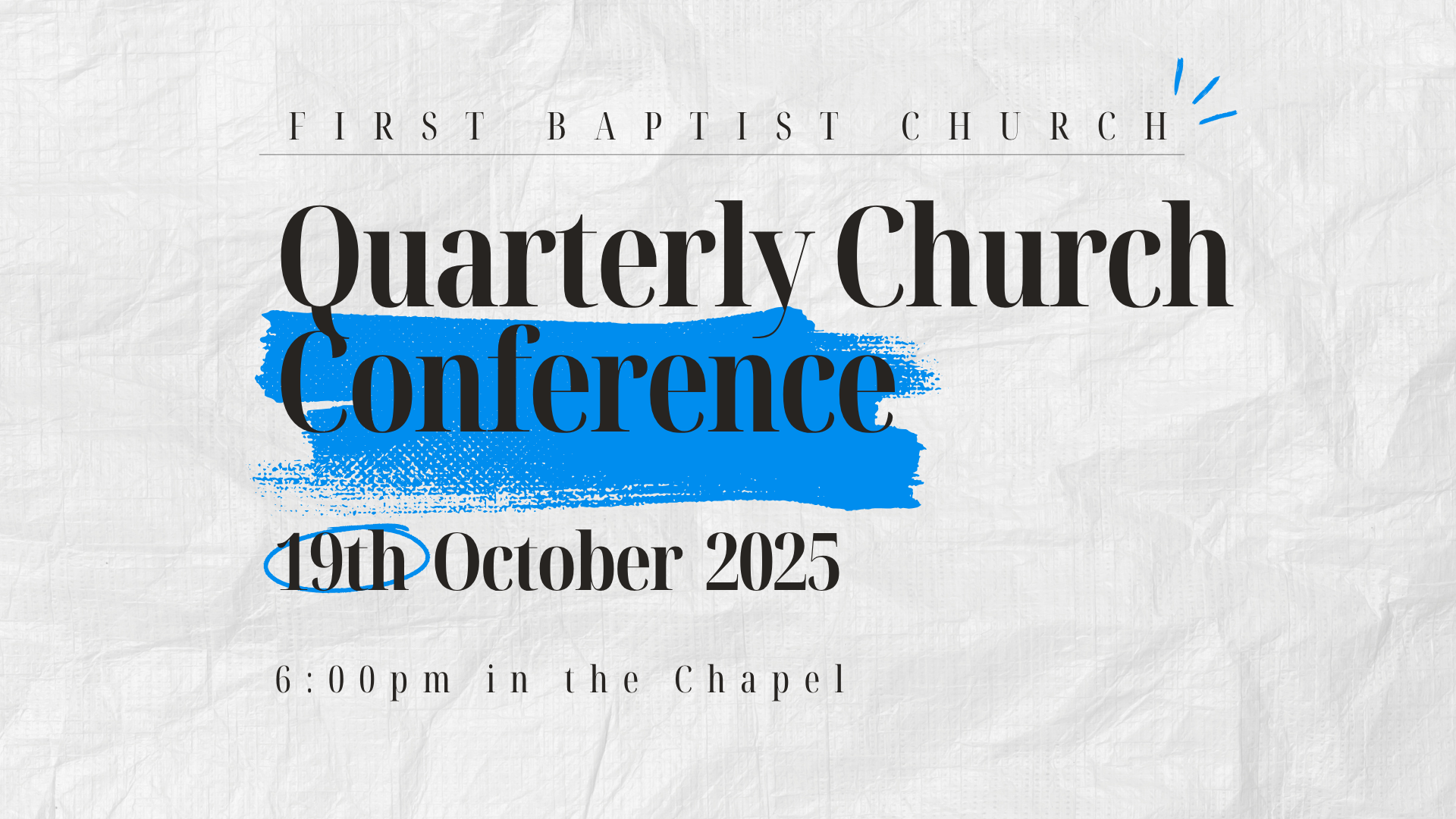 October 19 6:00 pm  |  First Baptist Church Chapel