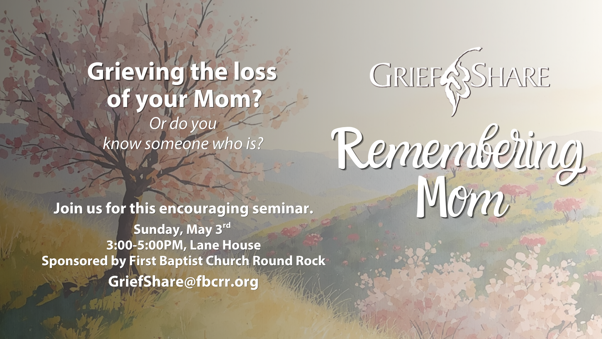 For more information or to RSVP, email GriefShare@fbcrr.org.